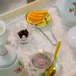 Η αναπαράσταση αυτής της τελετουργίας γίνεται με πιστότητα, αυθεντικά αντικείμενα, πορσελάνες, κεντήματα και μουσική εποχής.
